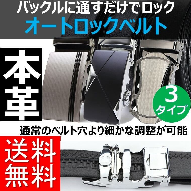 オリジナルギフトボックス付属 穴なし スライド式 オートロック式 バックル レザーベルト ビジネス カジュアル 両方に便利です!