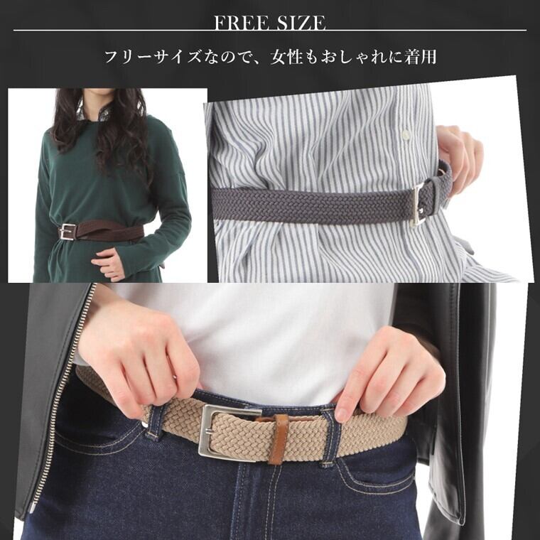 ✅【男女問わず様々な体型にフィット】 伸縮性のある素材と編み込み方法により、ベルトの本体が伸び縮みすることで、胴回りが小さい女性にも、メンズ・レディース関係なく、ユニセックス フリーサイズで使用頂けます